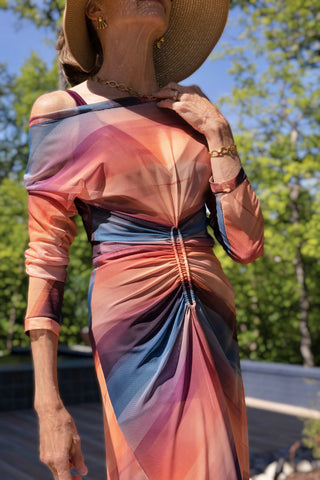 "As its name suggests, Serotone Swim is dedicated to making women feel good in their swimwear—no matter their age or shape. After witnessing her mother struggle to find flattering swimwear while going through menopause, founder Sarah Blaser wanted to create a brand that celebrates women’s diverse and ever-changing bodies without compromising on style or sustainability. Her debut collection for Miami Swim Week delivered on that promise, with flattering cuts and tasteful cover-ups in vibrant yet sophisticated prints."