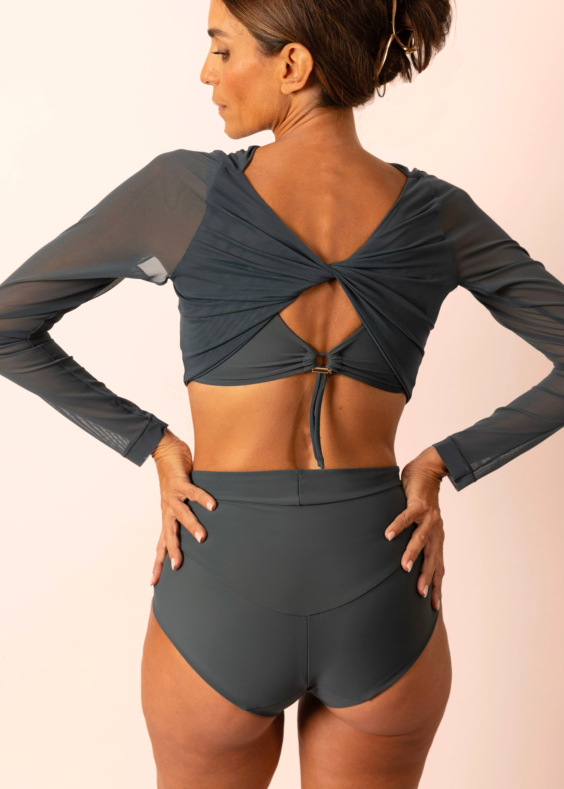 For those who want coverage and style, the Reversible Mesh Twist Top is the perfect addition to any swimsuit. Wear the twist in the back to protect your chest from the sun, or switch it to the front for a chic cut-out look. Water friendly, dries quickly, oh-so-breathable & lightweight.